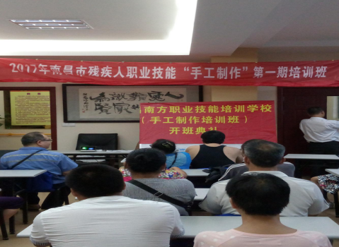 7月31日晚,市残联举办的“手工制作”培训班在青云谱区南方职业技能学校开班,此次培训旨在增强残疾人创业就业能力,开辟增收致富渠道,激励残疾人开发更多新颖、别致、富有特色的手工艺品。本次培训为期44天,共有59名学员参加。