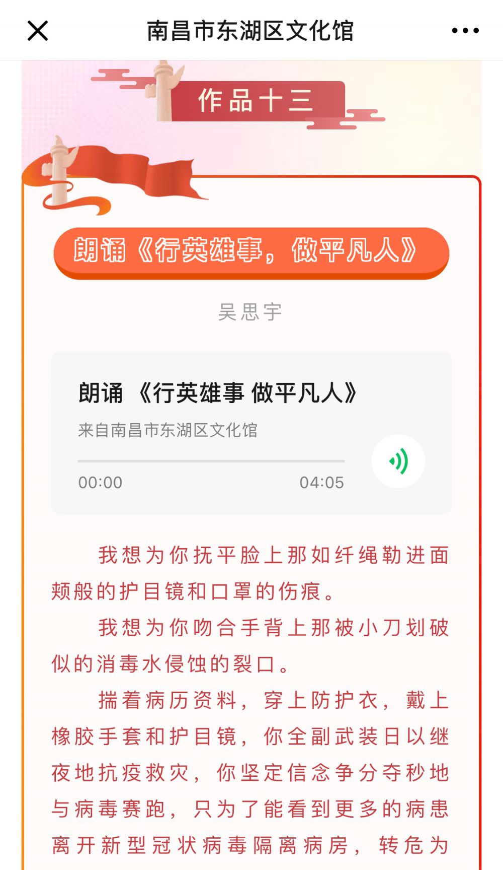 防控期间,区残联向区疫情防控指挥部捐赠口罩600只,向挂点社区——大院街道二七北路社区捐赠口罩200只。同时,区各残疾人专门协会在疫情防控中发挥积极作用,区聋协提供口罩购买信息150只;区肢协、区盲协向区红十字会捐赠爱心善款共计760元,用于此次疫情防控工作。除此之外,东湖区残疾人艺术团凝心聚力,创作了朗诵《行英雄事,做平凡人》、快板《万众一心战疫情》等一系列优秀群众作品,共同为祖国母亲加油鼓劲。
