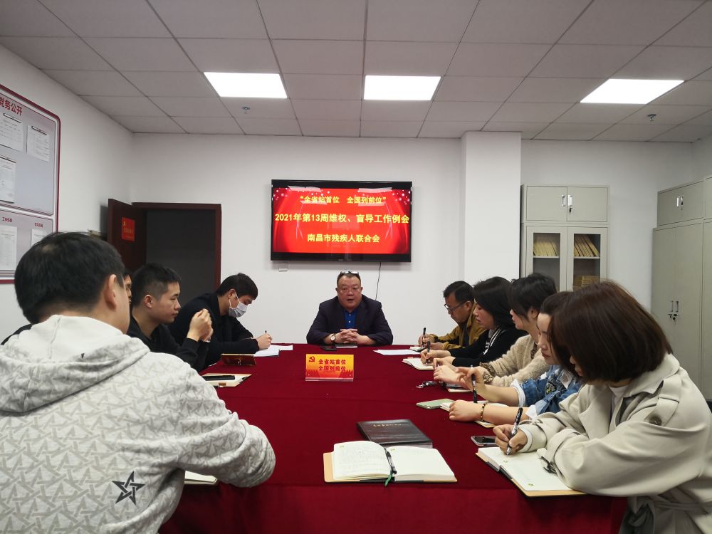 3月29日,新一周工作开始,市残联副理事长吴卫平、林善岳、邓林和等分管领导分别主持召开分管口2021年第13周工作例会,各科室、下属单位全体成员归口参加会议。