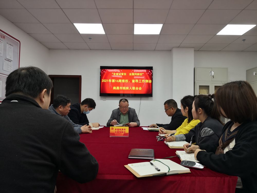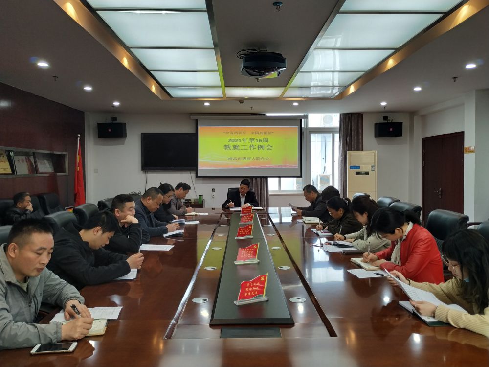 4月19日,新一周工作开始,市残联副理事长林善岳、邓林和,四级调研员徐训波等分管领导分别主持召开分管口2021年第16周工作例会,各科室、下属单位全体成员归口参加会议。