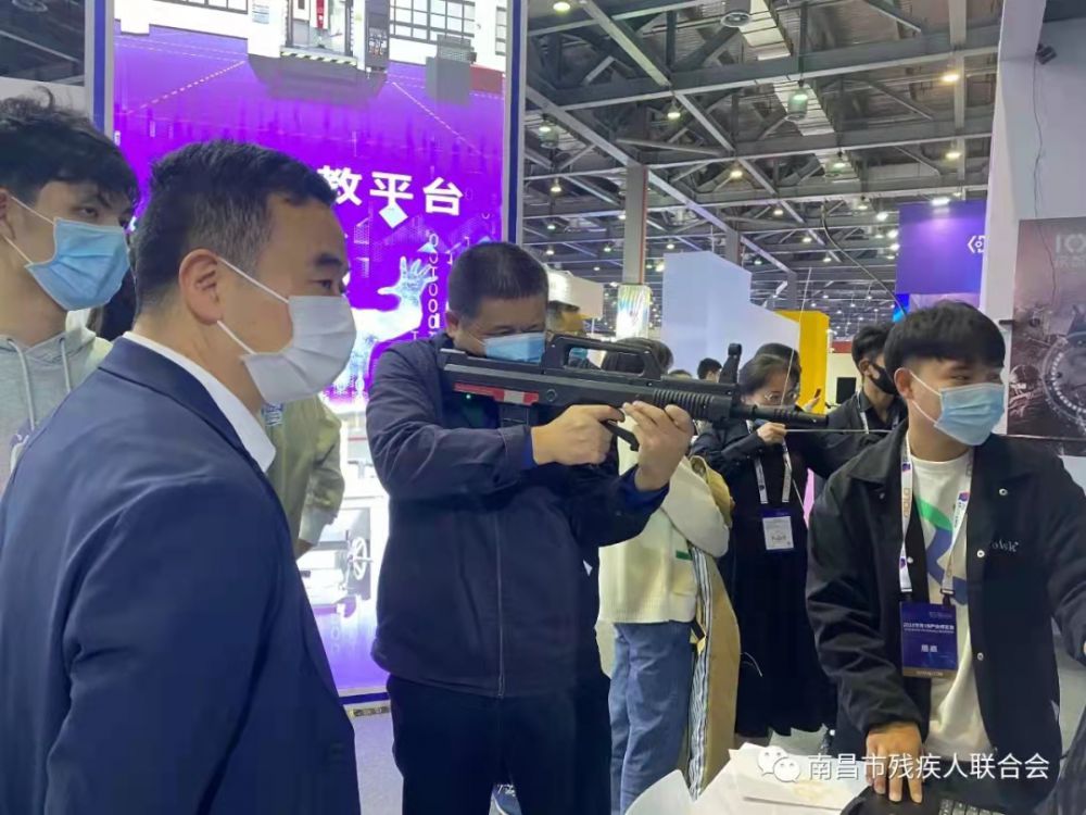 10月18日,在市残联邓林和副理事长的带领下,市残联机关及下属单位干部职工一行20余人前往南昌国际绿地博览中心,参观2021世界VR产业博览会。